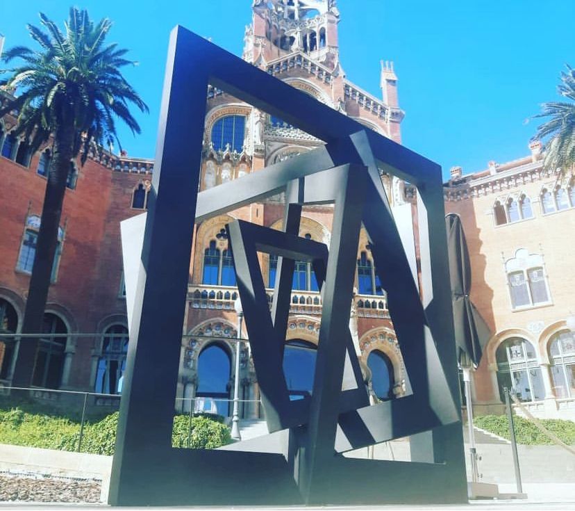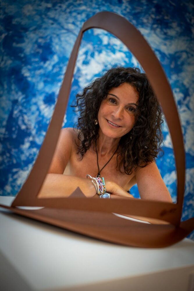 Jo no la coneixia. És una dona bella de 54 anys, que en fa 30 que treballa amb un material, el ferro, per al qual cal tenir, a més de tècnica, força física, perquè treballa i crea també figures de gran tamany. Ella és, a més d’escultora, pintora, periodista (havia treballat durant 12 anys a ràdio i televisió) i galerista, que destaca per les seves escultures geomètriques, amb influència de Chillida i Oteiza.